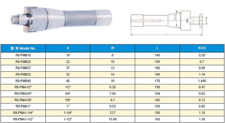 R8柄套式(平面)銑刀柄